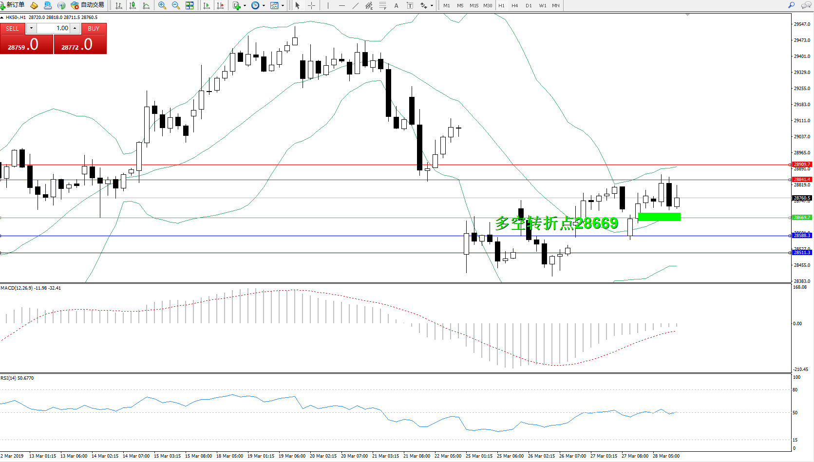 交易策略:28669上方看涨,目标28841、28909
