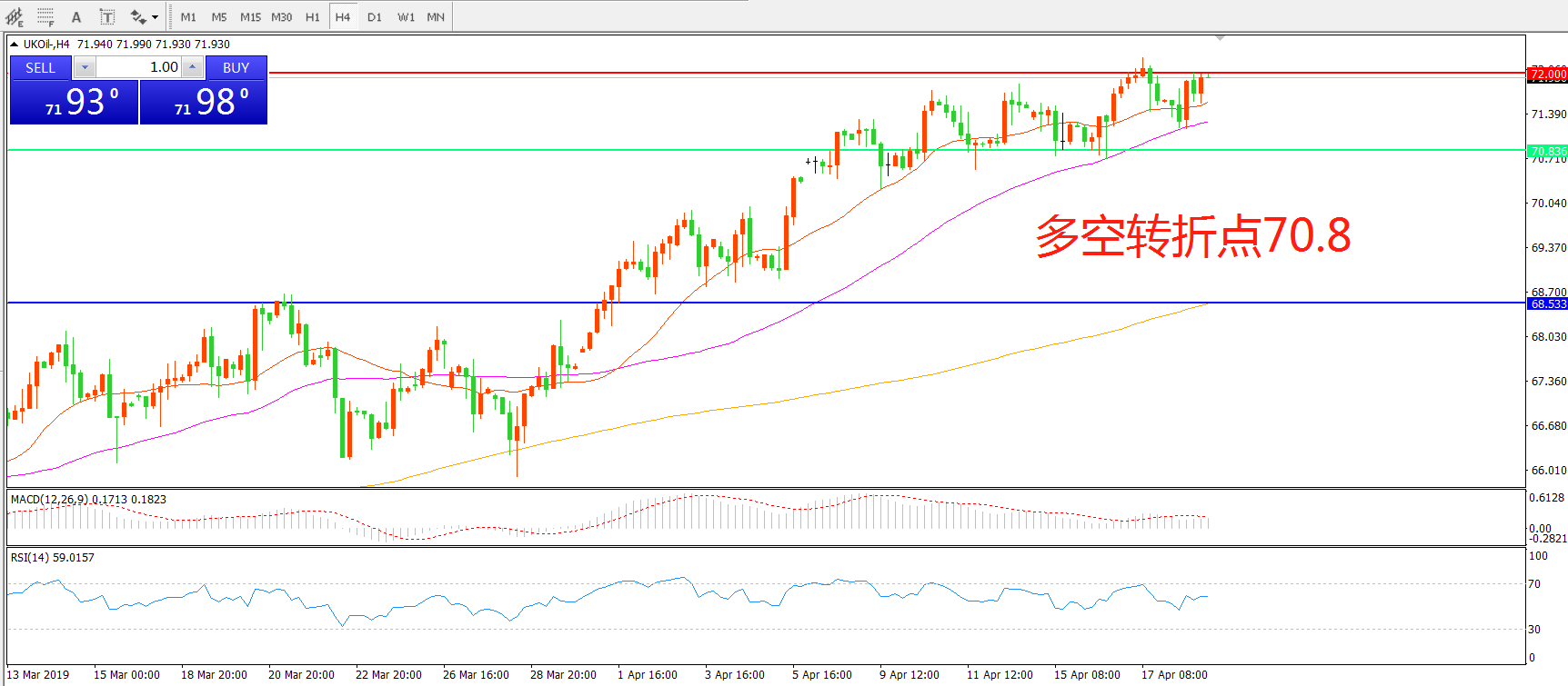 交易策略:在70.80之上看涨,目标72.00    74.50