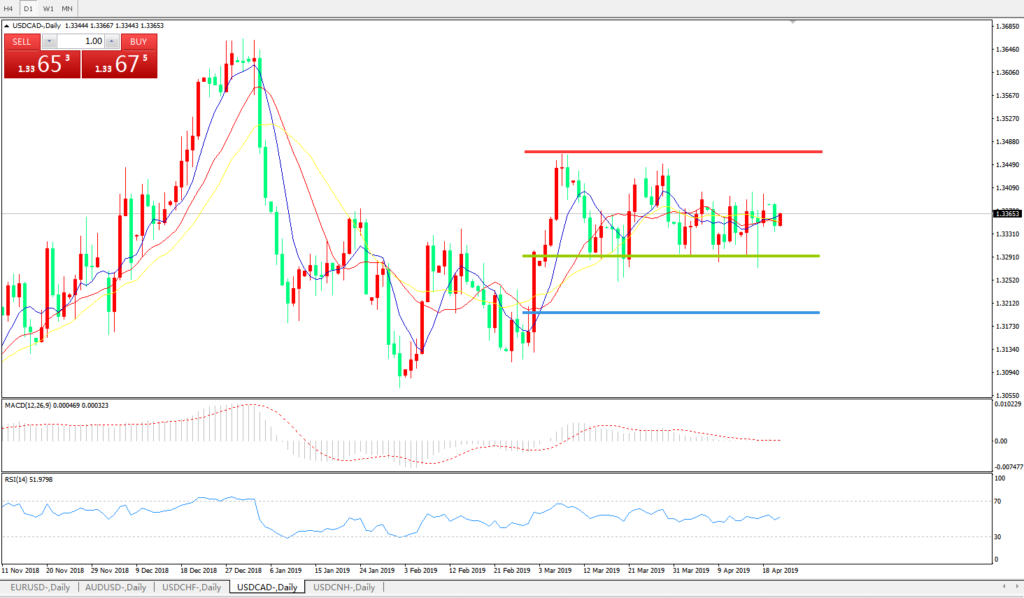 美元兑加元USDCAD 日线图: