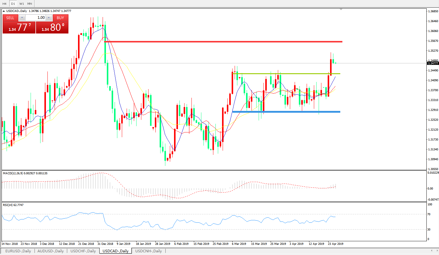 美元兑加元USDCAD 日线图: