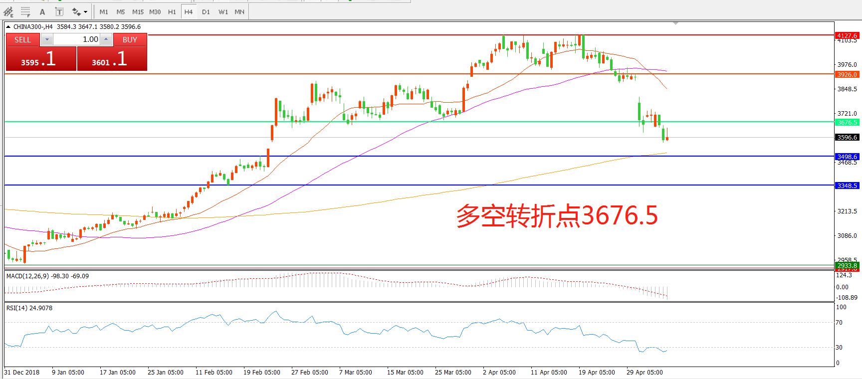 交易策略:在3676.50之下看跌,目标3498.00     3348.50