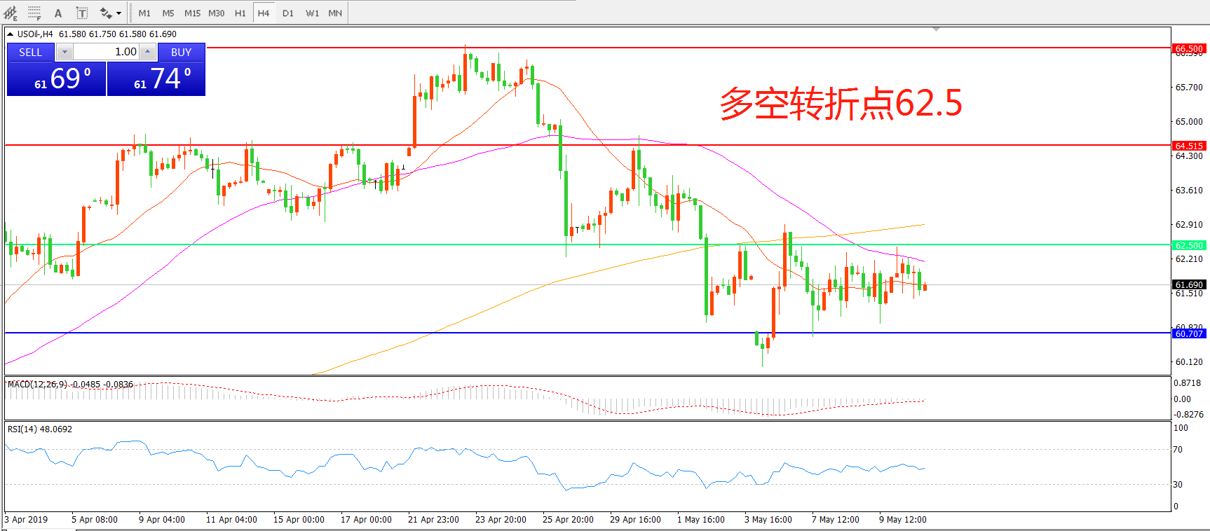 多空转折点:62.50