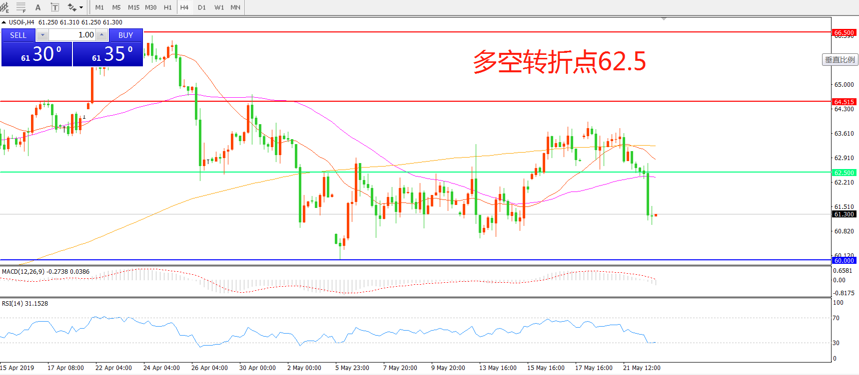 交易策略:在62.50之下看跌,目标60.00    58.00
