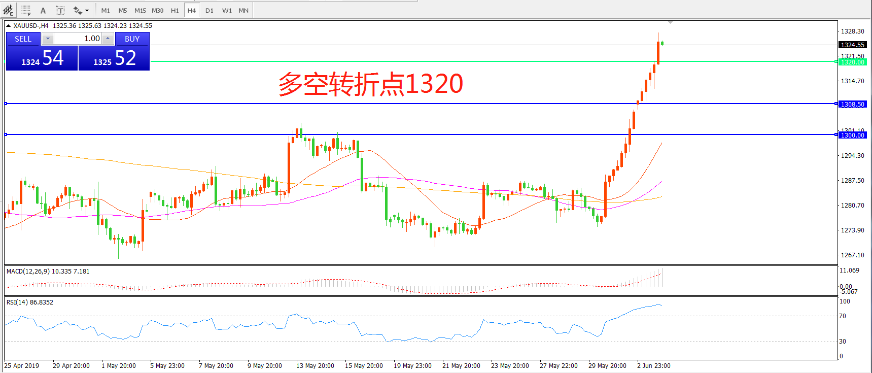 多空转折点:1320.00
