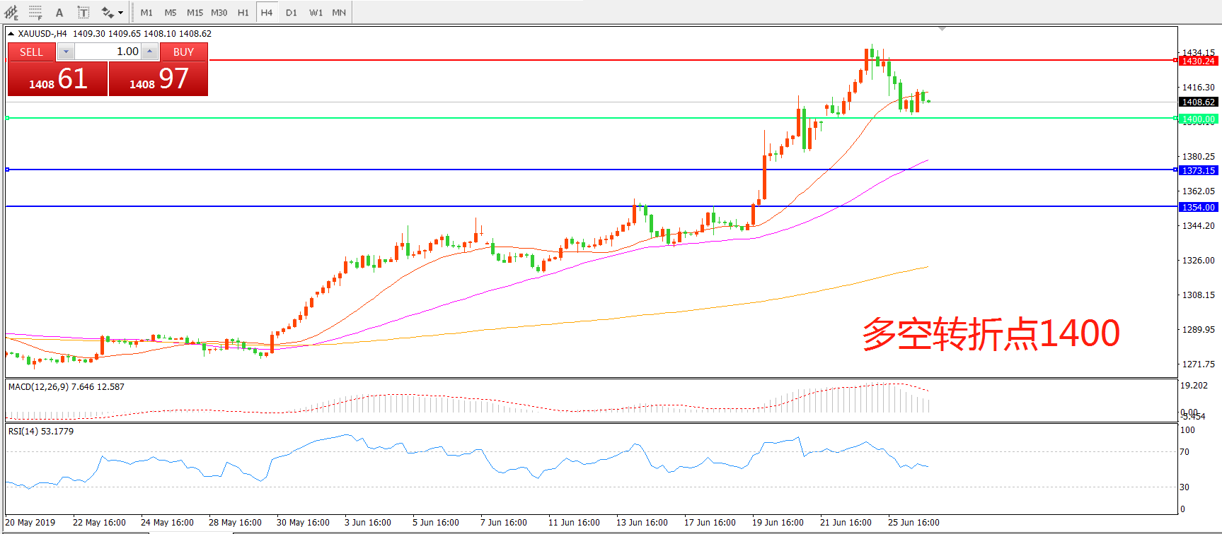 多空转折点:1400.00