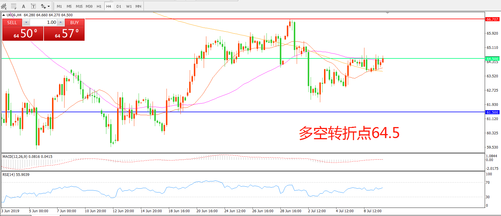 北京时间周三(7月10日)凌晨,美国石油协会(API)公布的数据显示,美国截至7月5日当周API原油库存减少813万桶,远超预期的356.7万桶,利好油价,数据公布后,美油短线快速拉升,最终收报58.44美元/桶。但鉴于全球贸易紧张局势以及潜在的经济放缓,油价短期内依然以区间震荡为主。晚间22:30将公布EIA库存数据,务必重点关注。