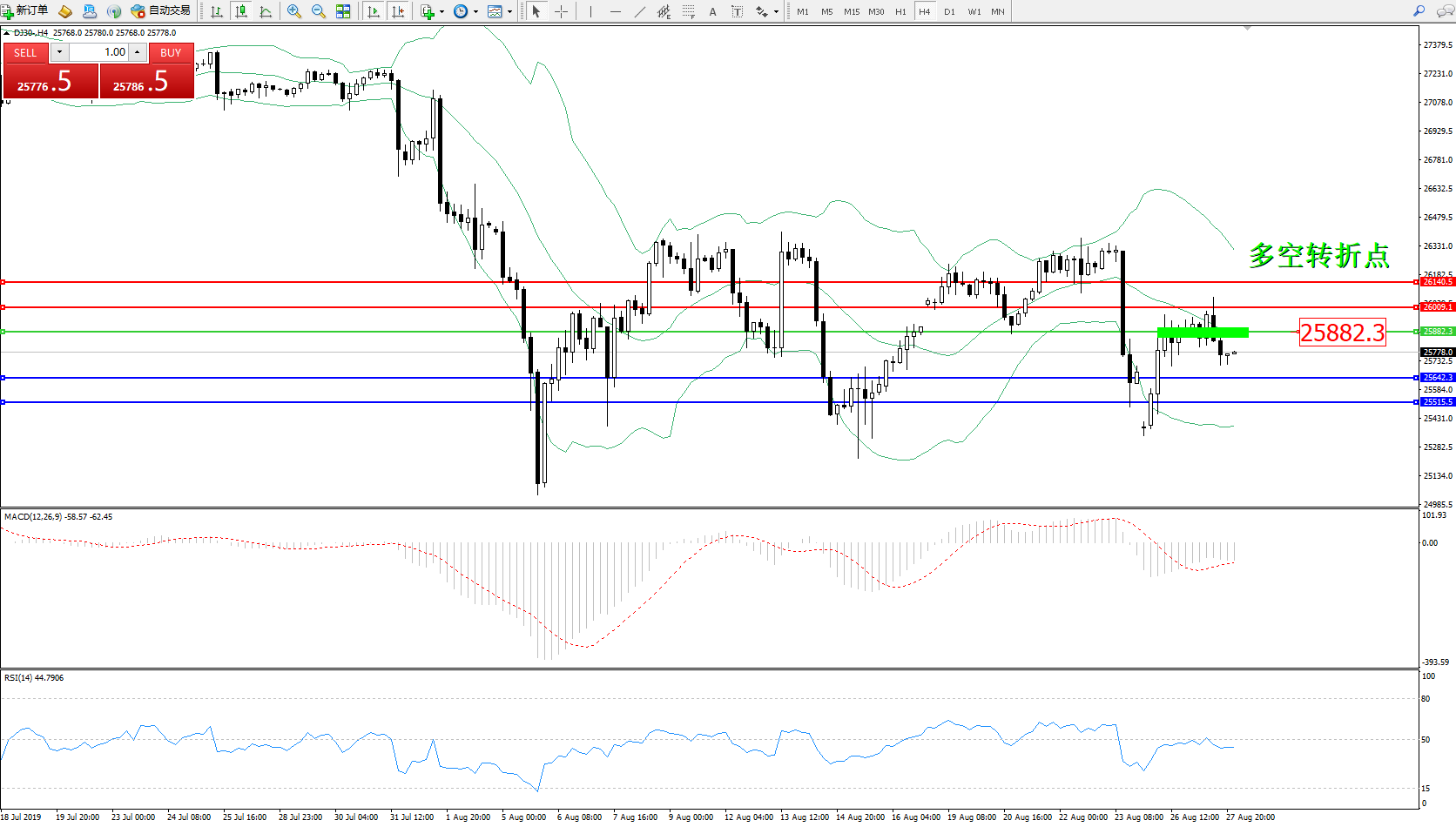 道琼斯指数8月27日(周二)收盘下跌120.90点,跌幅0.47%,报25777.90点。美国经济数据令人失望和贸易争端持续,美国10年期国债收益率跌破1.5%。2年期与10年期美债收益率倒挂幅度加深,发出经济衰退的强烈警示讯号。投资者仍在权衡国际贸易局势发展及衰退风险。