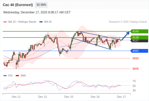 法国CAC指数期货 (Euronext) (Z5) 当日内: 超短线(当日内)支撑位在8082附近。