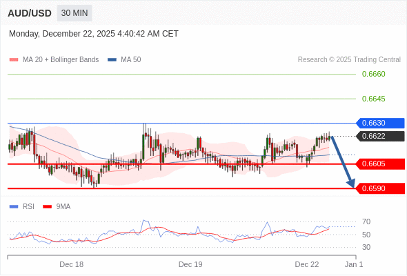 在 0.6630 之下,看跌,目标价位为 0.6605 ,然后为 0.6590 。