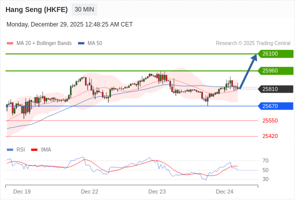 在 25670 之上,看涨,目标价位为 25960 ,然后为 26100 。