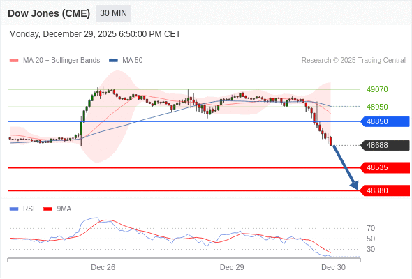 在 48850 之下,看跌,目标价位为 48535 ,然后为 48380 。