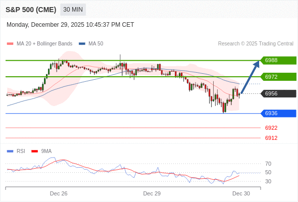 在 6936 之上,看涨,目标价位为 6972 ,然后为 6988 。