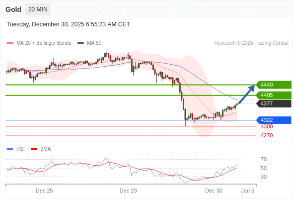 在 4322 之上,看涨,目标价位为 4405 ,然后为 4440 。