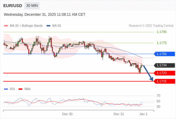 交易策略: 在 1.1755 之下,看跌,目标价位为 1.1720 ,然后为 1.1705 。