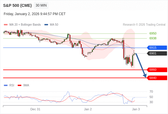 美国标普500指数期货 (H6) 当日内: 短期关键阻力位在6915。
