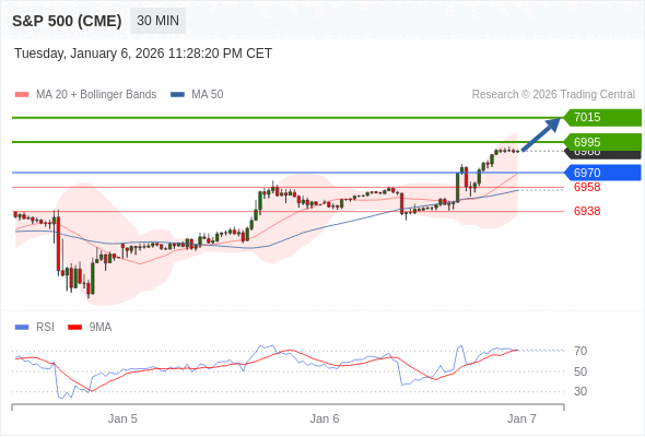 美国标普500指数期货 (H6) 当日内: 目标位为7015。