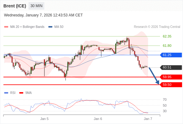 在 61.25 之下,看跌,目标价位为 59.95 ,然后为 59.50 。