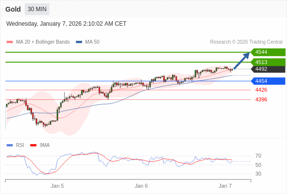在 4454 之上,看涨,目标价位为 4513 ,然后为 4544 。