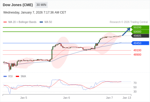 在 49450 之上,看涨,目标价位为 50000 ,然后为 50200 。