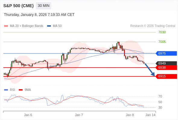 在 6975 之下,看跌,目标价位为 6938 ,然后为 6915 。