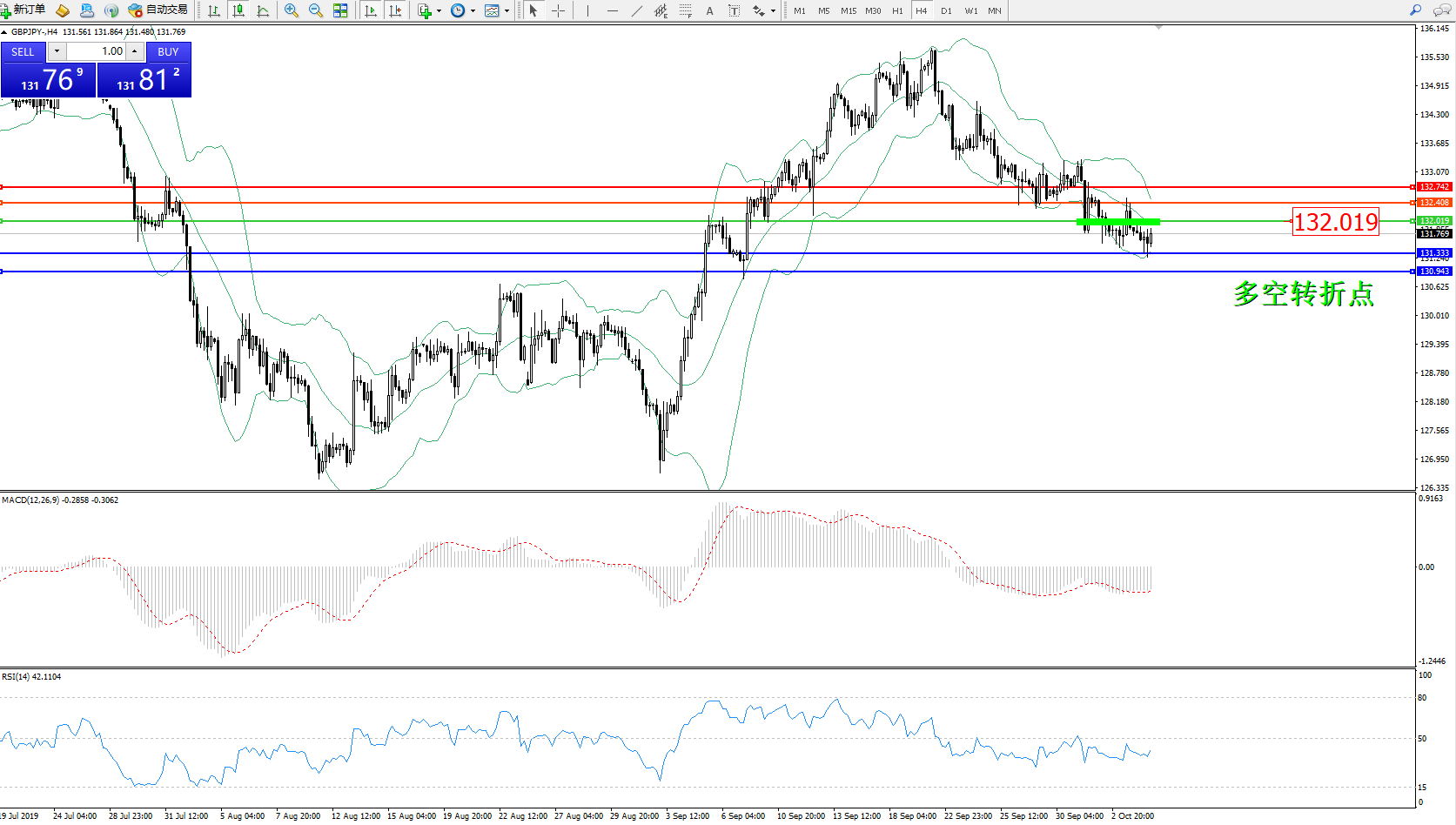 备选策略:132.019上方看涨,目标132.408、132.742