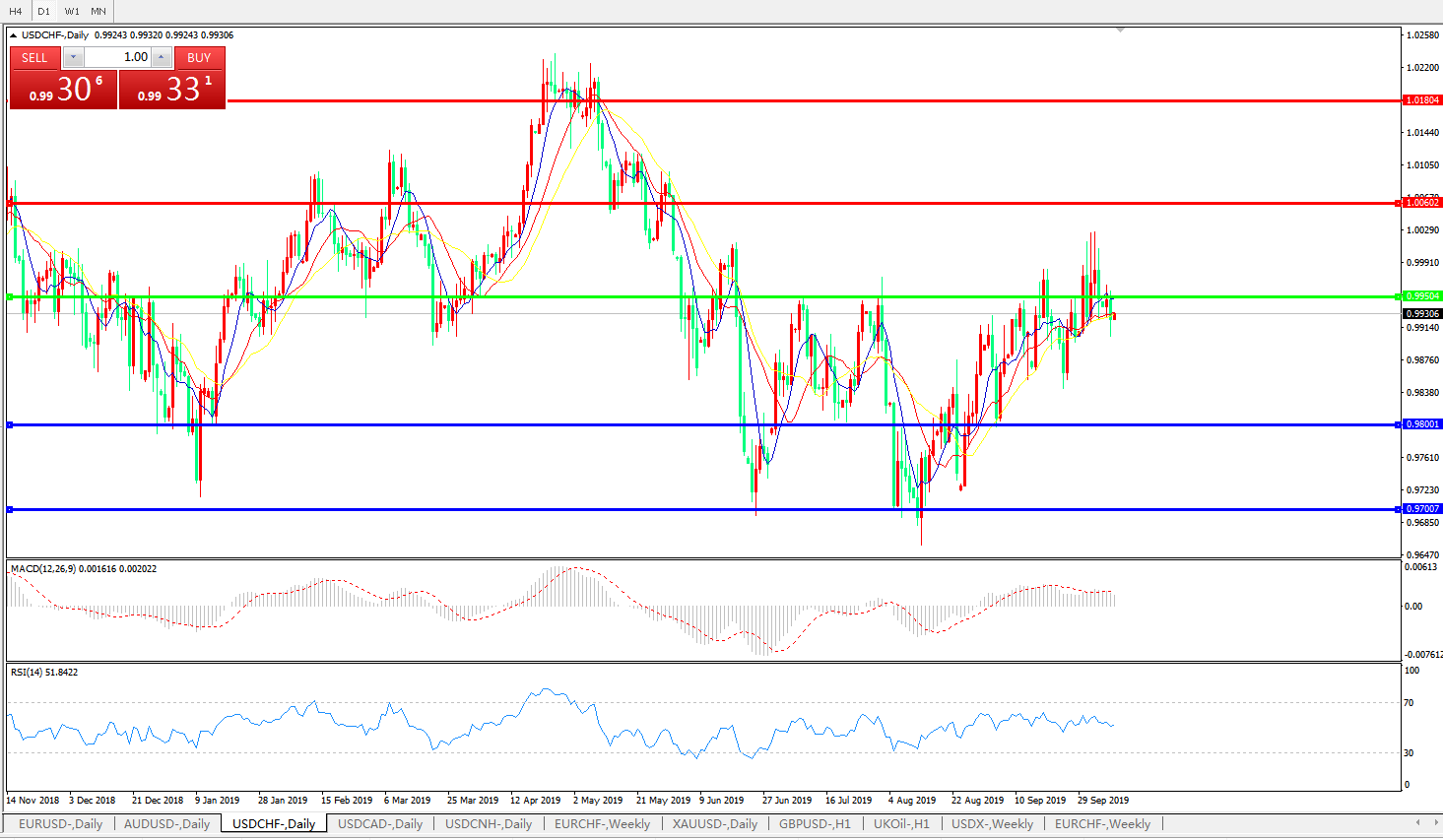 交易策略:0.9950下方看跌,目标0.98000.9700
