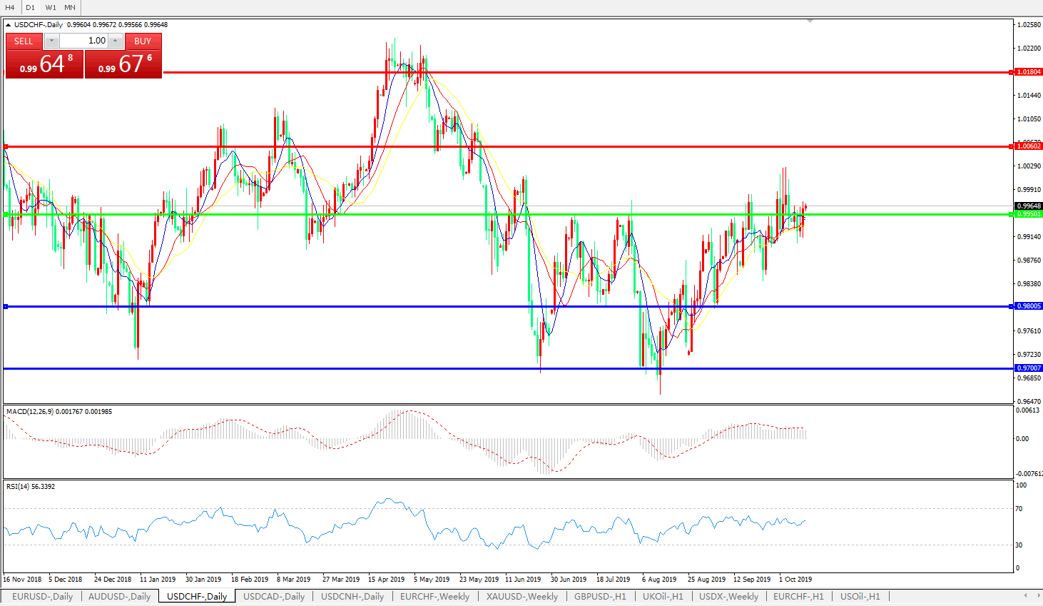 美元兑瑞郎USDCHF 日线图:
