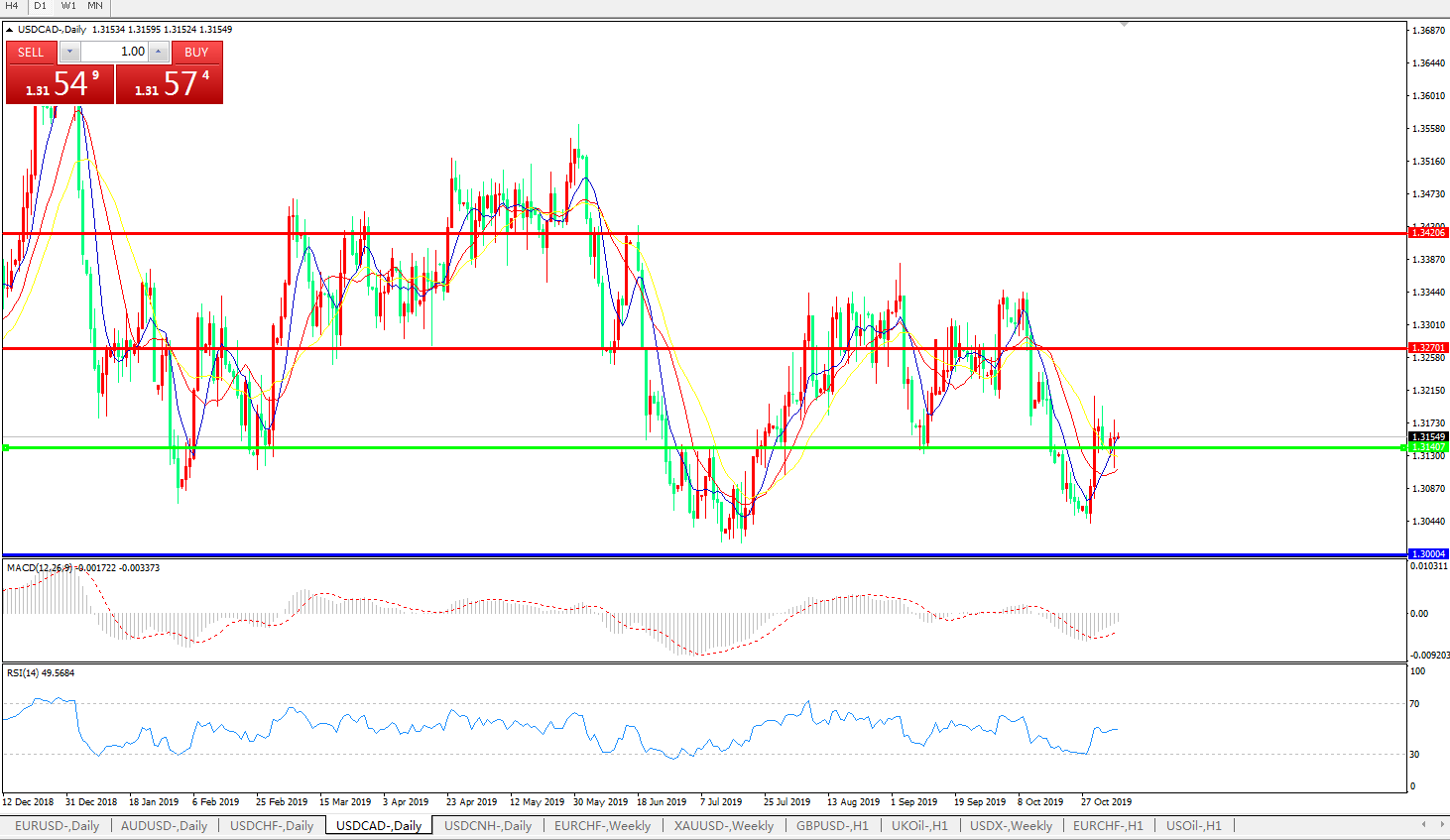 美元兑加元USDCAD 日线图: