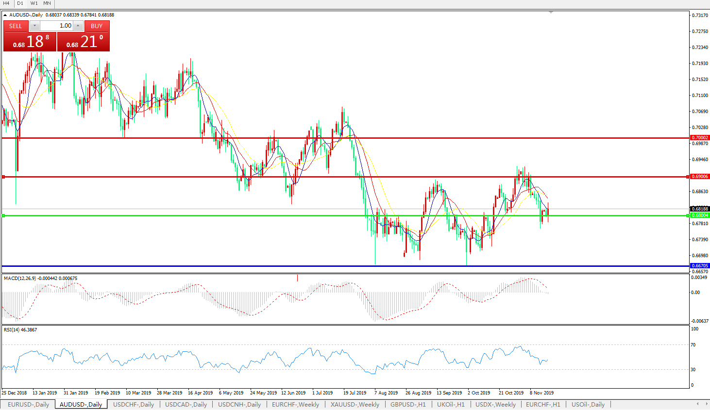备选策略:0.6800下方看跌,目标0.6670、0.6600