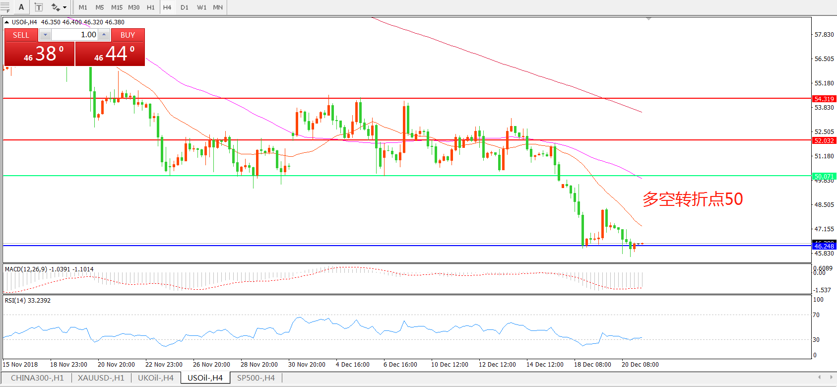 美国原油USOIL4小时图
