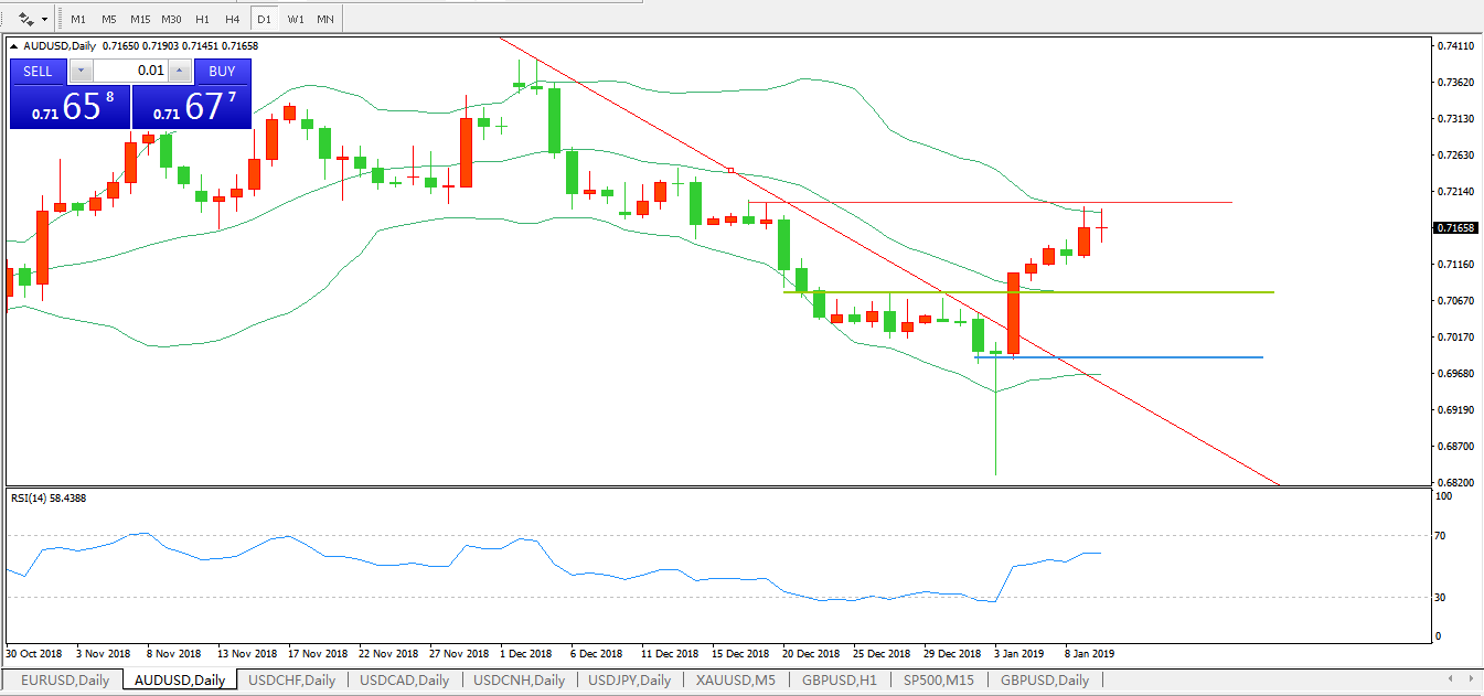 技术面简析:布林带开口开始拐头价格升穿布林中轨试探布林中轨,RSI拐头向上攻击,下降趋势线被击破,预计短期汇价将延续上行态势