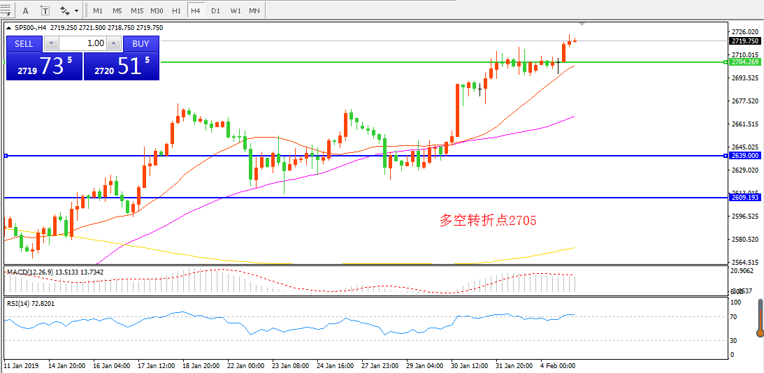 标普500SP5004小时图