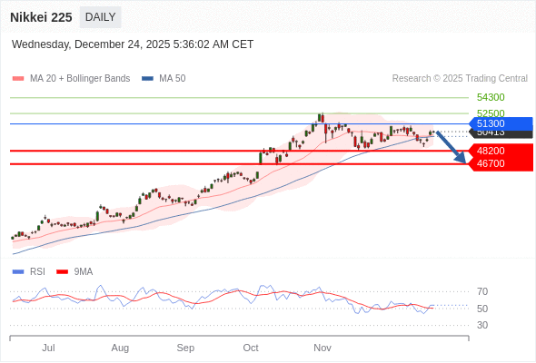 Nikkei 225 短线: 短期关键阻力位在51300。