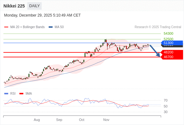 在 51300 之下,看跌,目标价位为 48200 ,然后为 46700 。