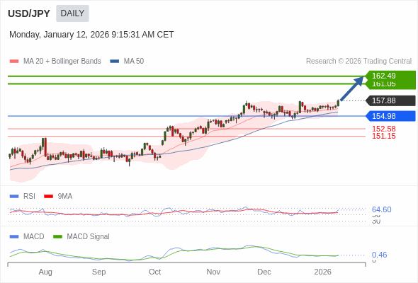 美元/日元 短线 : 看涨,当 154.98 为支撑位。